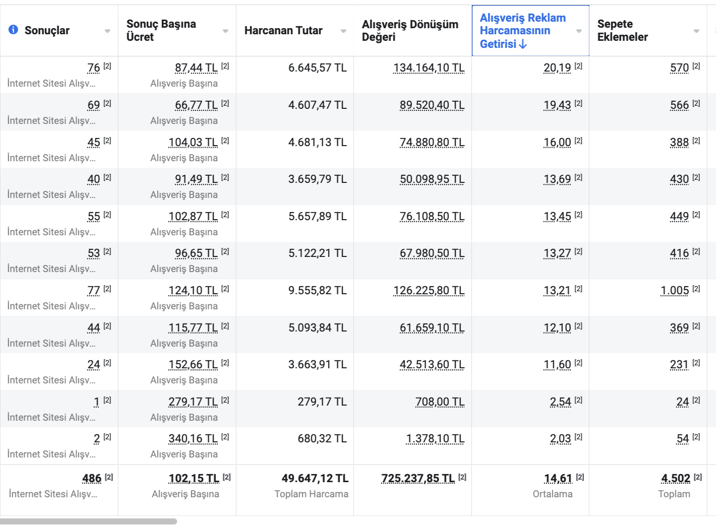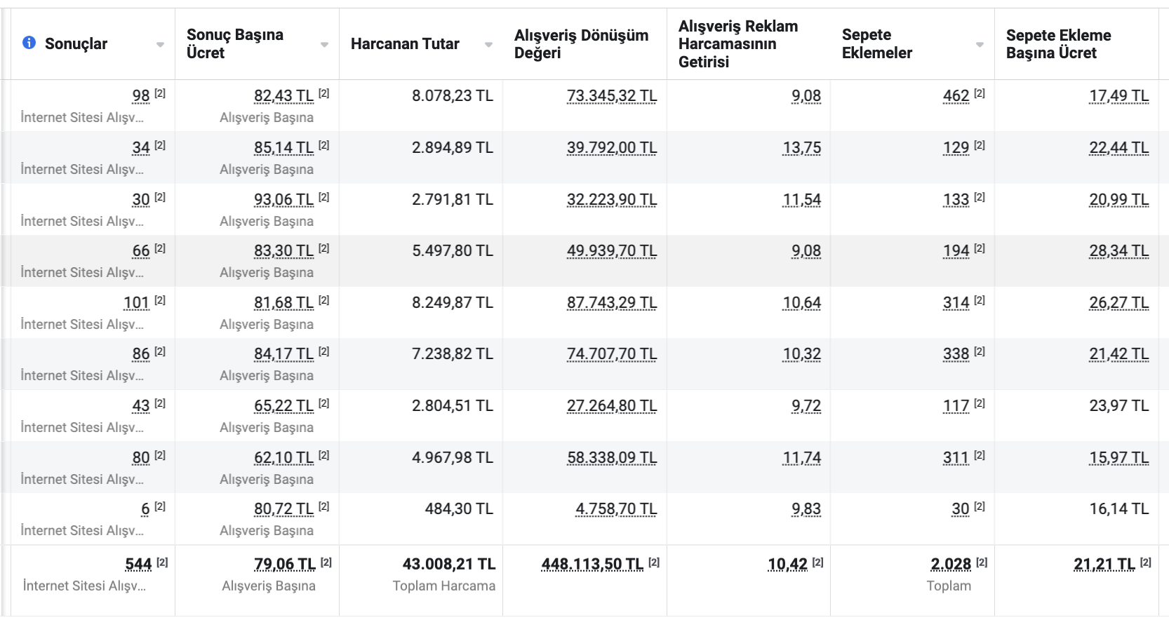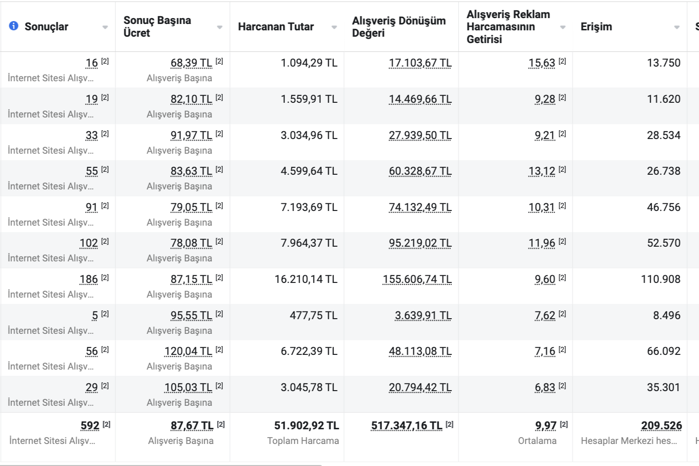 Eğitimde bahsettiğim stratejileri kullanarak elde ettiğim bazı reklam sonuçlarnı aşağıda bulabilirsin.
