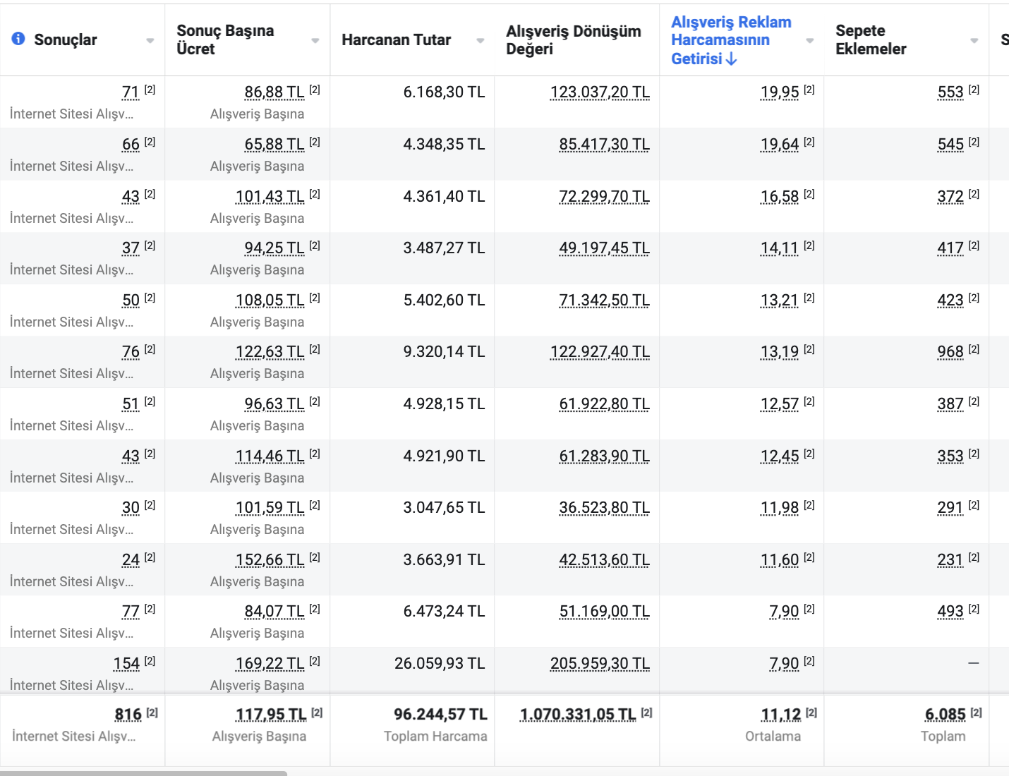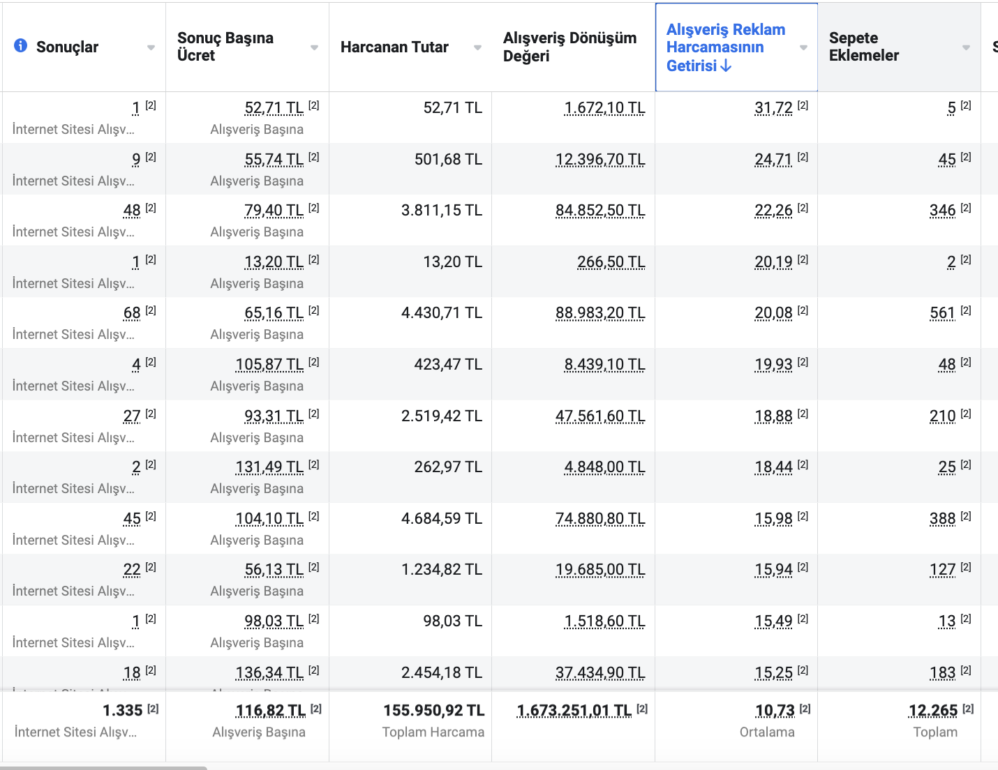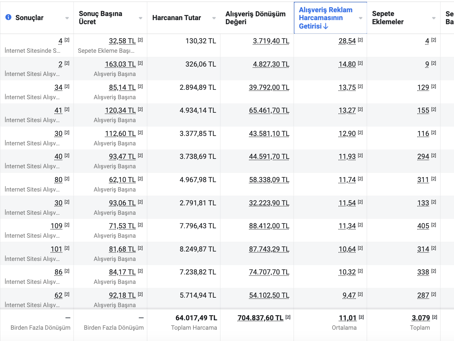 Eğitimde bahsettiğim stratejileri kullanarak elde ettiğim bazı reklam sonuçlarnı aşağıda bulabilirsin.